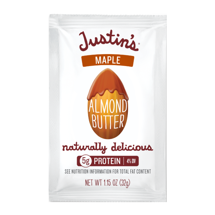 Justin's Maple Almond Butter Squeeze Pack is a travel friendly portion of their delicious and creamy almond butter recipe.