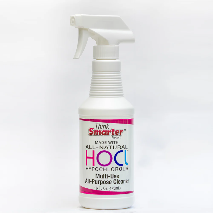 ThinkSmarter's HOCl 100% Natural Multi-Use All-Purpose Cleaner is the ultimate solution for a clean and healthy environment! Our powerful, all-natural formula is made with Hypochlorous Acid (HOCl), a safe and effective hygienic product.